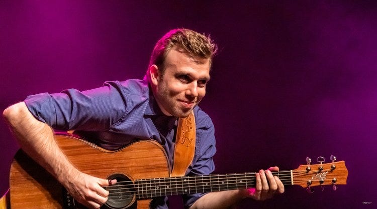 From his site: Gareth Pearson is referred to as “The Welsh Tornado” which is particularly appropriate, seeing as this special talent combines fingerstyle pyrotechnics, with explosive lead runs making Pearson one of the most exciting acoustic musicians gigging today.